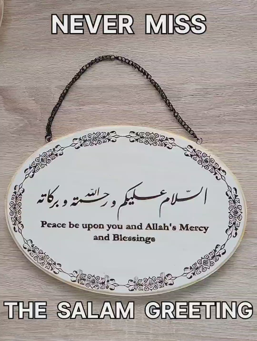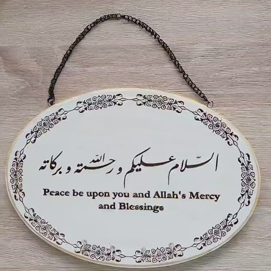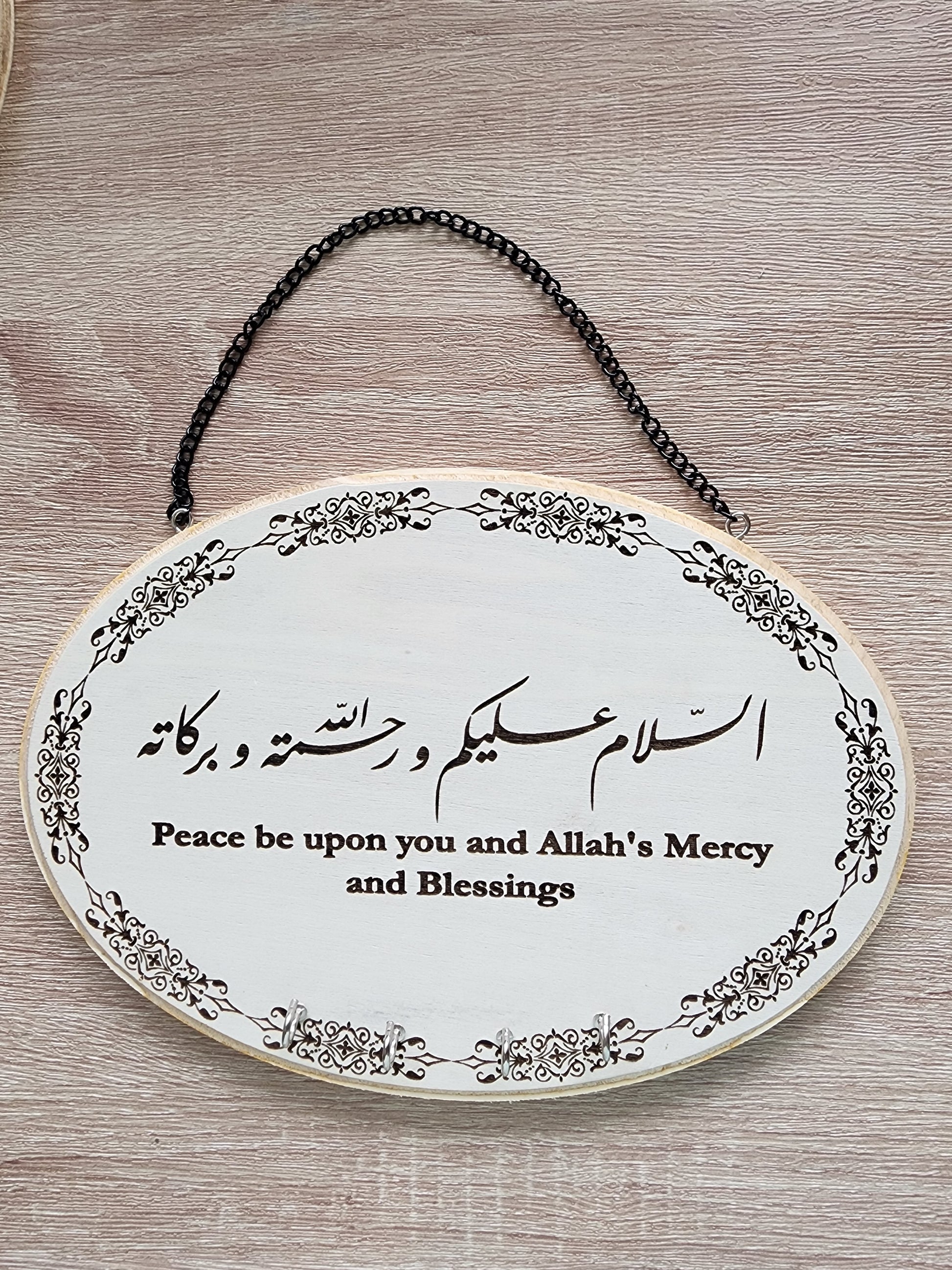 The Salam greeting is a perfect dua for everyone, including your loved ones at home. This plaque (or door sign) makes sure that you don't forget to make a dua when entering your home. This also gives your guests a lovely welcome